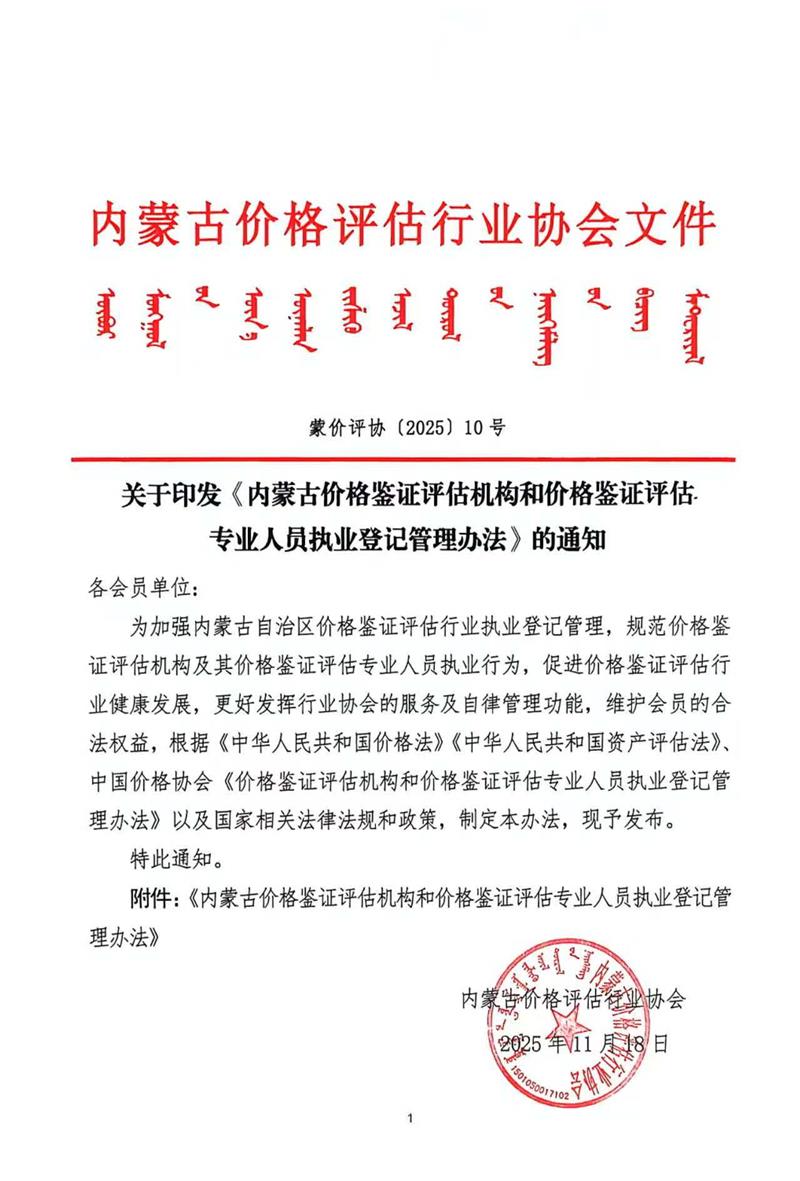 【重要通知】新《内蒙古价格鉴证评估机构和价格鉴证评估专业人员执业登记管理办法》将于2026年1月1日实施