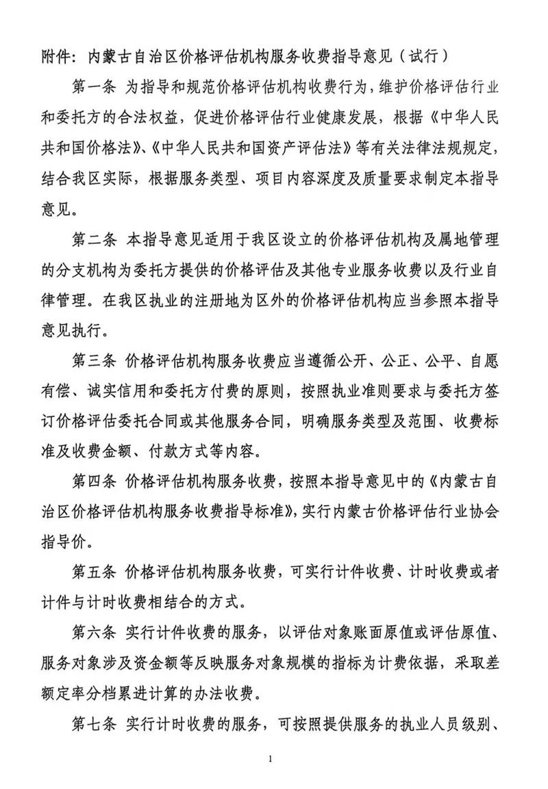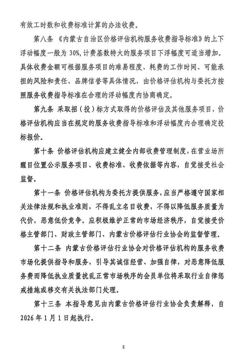 【重要通知】新《内蒙古自治区价格评估机构服务收费指导意见(试行)》将于2026年1月1日实施