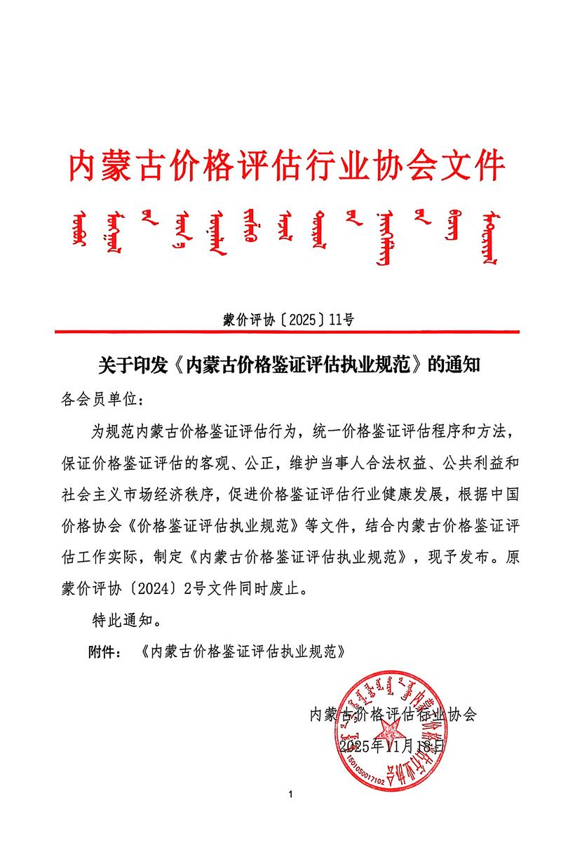 【重要通知】新《内蒙古价格鉴证评估职业规范》将于2026年1月1日实施
